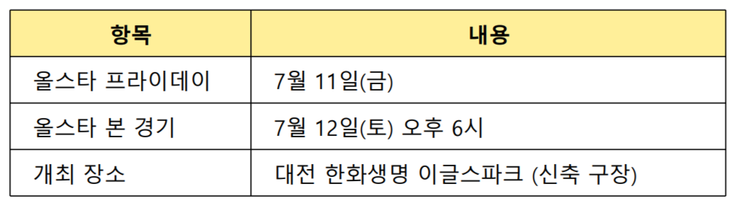 1. 2025 KBO 올스타전 전체 일정 요약